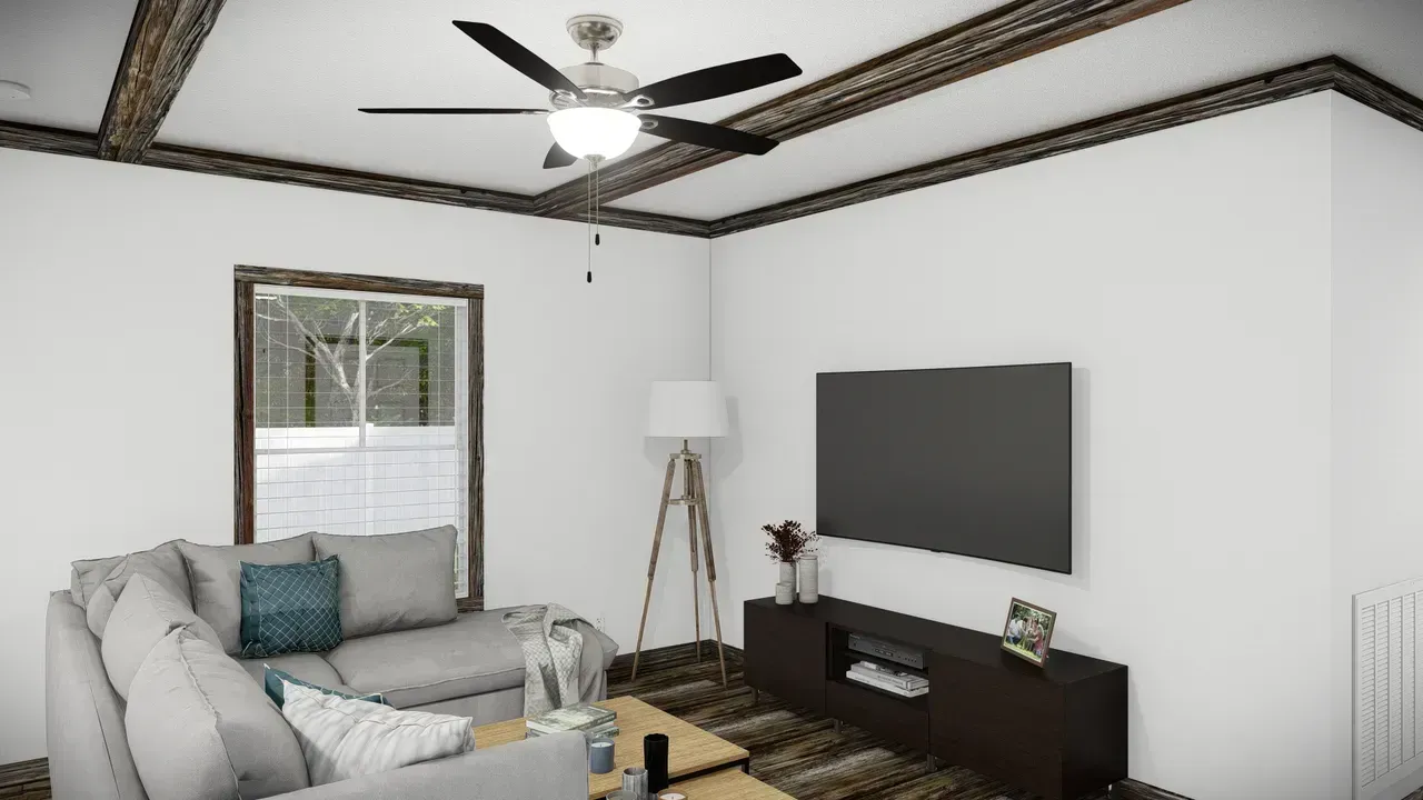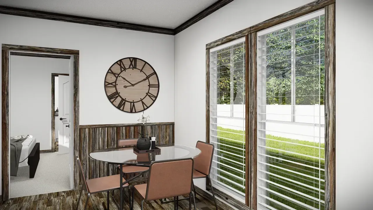 The Disciple Series / The Simon built by BG Manufacturing offers 1,056 sq. ft. of well-utilized living space featuring 2 bedrooms and 2 bathrooms. The open design connects the bright living room, modern kitchen, and dining area, creating a welcoming atmosphere. The master suite includes a private bath, while the second bedroom and bath provide flexibility for guests or family. The Simon combines efficient design and modern comfort, ideal for those seeking a cozy yet stylish home.